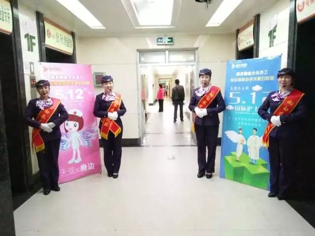 城關(guān)物業(yè)醫(yī)院類各項目部在護(hù)士節(jié)當(dāng)天,在醫(yī)院各主要入口處擺放節(jié)日祝福展架,并向來往的醫(yī)護(hù)人員行禮,向他們送去節(jié)日的祝福。