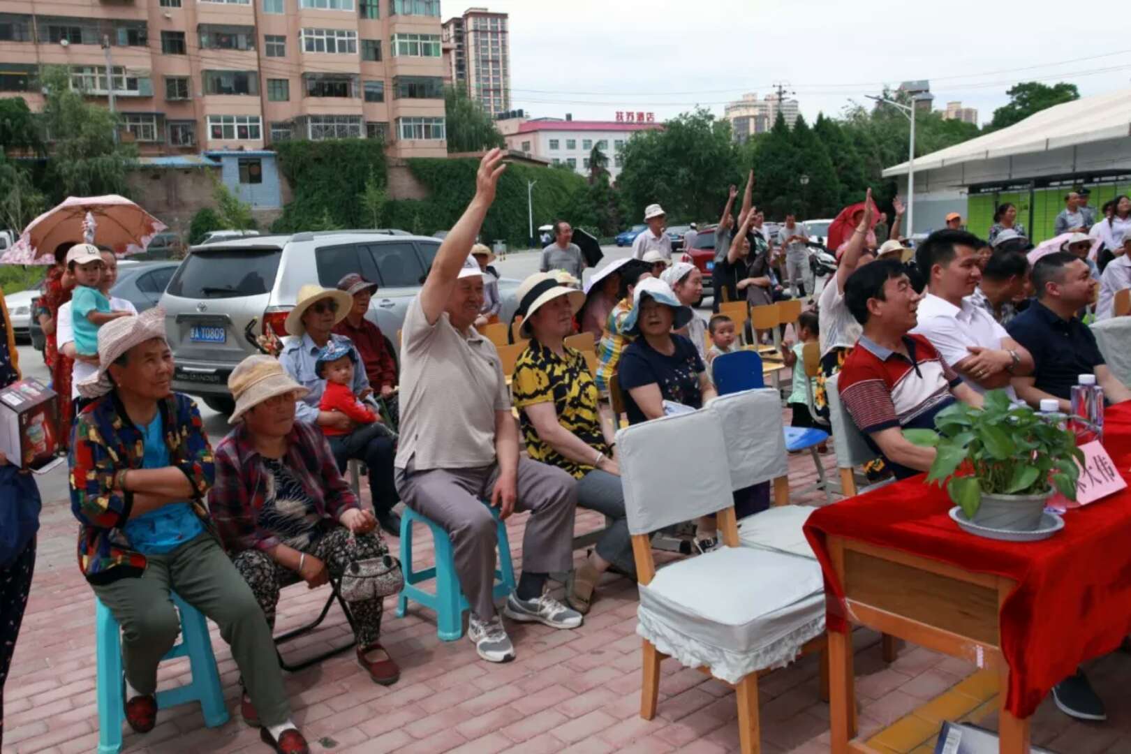 活動(dòng)期間有獎(jiǎng)問答環(huán)節(jié)中,業(yè)主們高舉的手,