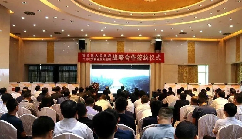 參會(huì)人員觀看城關(guān)物業(yè)公司宣傳片及全域無垃圾專項(xiàng)治理投資項(xiàng)目示范案例視頻后,慶陽市西峰區(qū)區(qū)委常委、常務(wù)副區(qū)長(zhǎng)李廷位、蘭州城關(guān)物業(yè)服務(wù)集團(tuán)有限公司總裁楊佳林代表雙方簽訂合作協(xié)議。