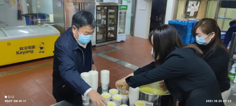 為了確保餐飲能夠及時送達各防疫點,城關(guān)物業(yè)董事長楊民召從早上5:30開始就帶領(lǐng)大家在配餐間忙碌起來。他一邊配餐,一邊不停地看時間,只為確保防疫一線的工作人員吃上熱乎可口的飯菜。他說到,“我們的愛心餐要一直送下去,絕對不能讓辛苦在防疫一線的工作人員在吃飯上有后顧之憂。”