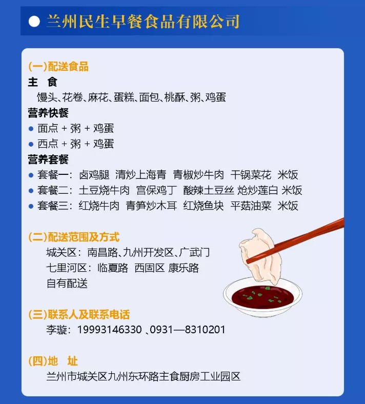 為了緩解當(dāng)前蘭州地區(qū)團體就餐需求加大、居民外出就餐不便的問題,甘肅省商務(wù)廳指導(dǎo)蘭州市內(nèi)規(guī)模較大、防控措施到位、食品安全達標(biāo)的食品生產(chǎn)企業(yè)和餐飲企業(yè)開展餐飲配送服務(wù),經(jīng)過嚴格挑選,蘭州民生早餐食品有限公司確定為疫情期間首批餐飲配送企業(yè)。此次,城關(guān)物業(yè)與民生早餐共同為隔離小區(qū)、防疫點位、團體單位及社會大眾配送餐品,全力滿足重點區(qū)域疫情期間基本生活需求。