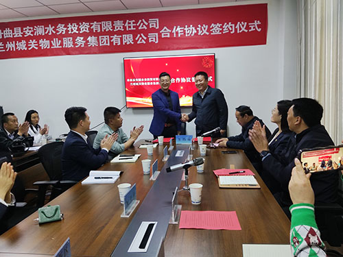4月13日,蘭州城關(guān)物業(yè)服務(wù)集團(tuán)有限公司(簡(jiǎn)稱城關(guān)物業(yè)集團(tuán))再拓版圖!與舟曲縣安瀾水務(wù)投資有限責(zé)任公司(簡(jiǎn)稱舟曲縣水投公司)正式舉行了合作協(xié)議簽約儀式,出席儀式的有:
